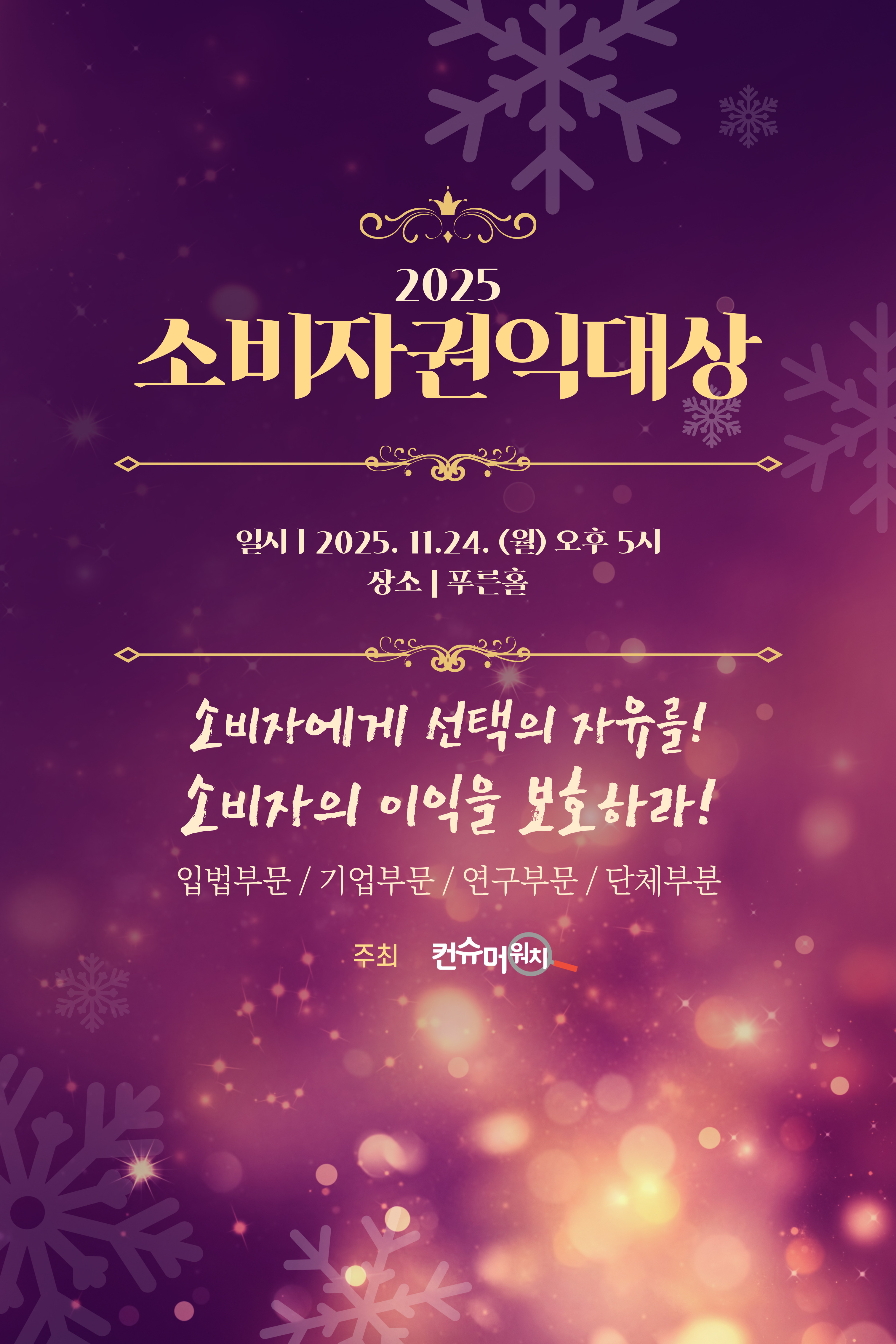 | ▶ | [시상식] 2025 소비자권익대상 시상식 안내컨슈머워치 / 2025.11.17 |